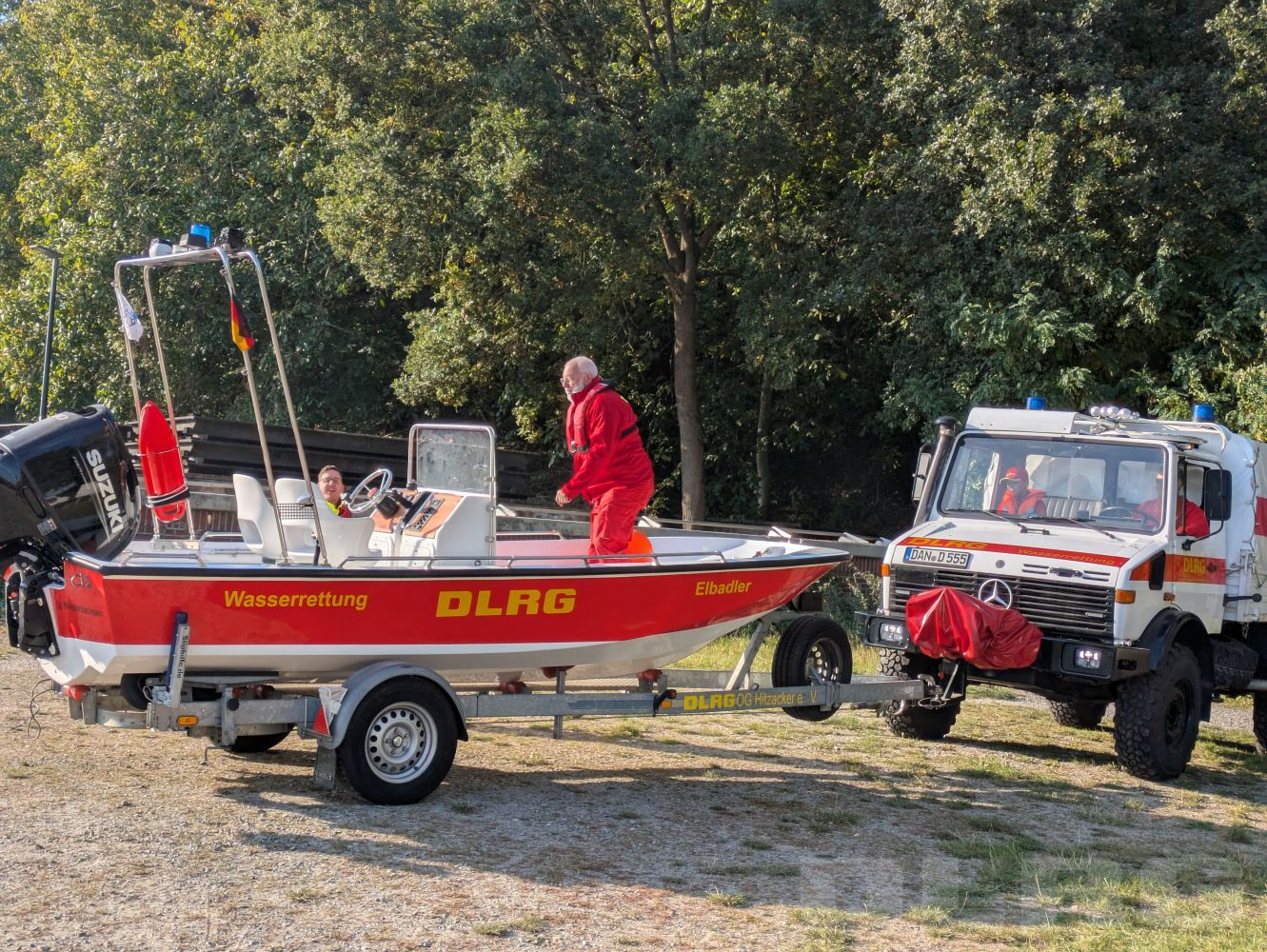 Unimog und Elbadler der DLRG OG Hitzacker beim slippen