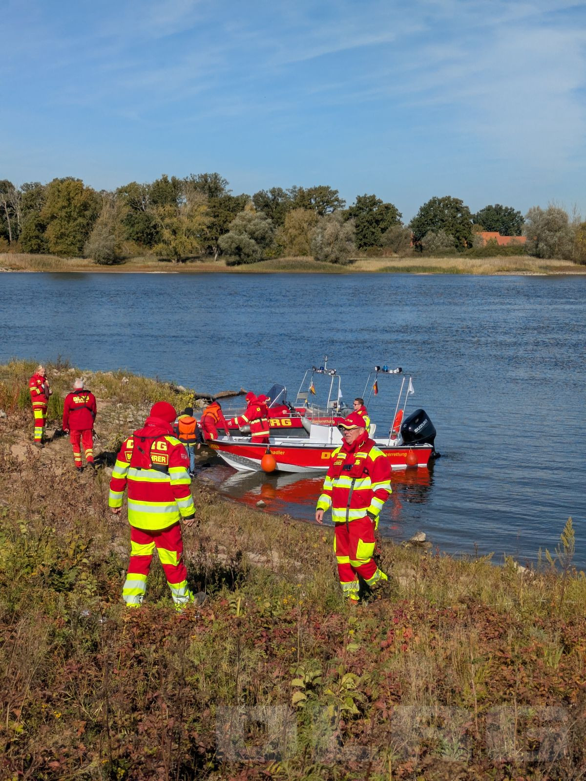 Mitglieder dier DLRG OG Hitzacker und OG Rosche bei der Einsatzbesprechung